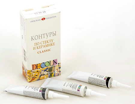 Контуры используются для создания декоративных эффектов, прорисовки мелких деталей на изделиях из стекла, фарфора, фаянса. Также пригодны для нанесения на полистирол, оргстекло и другие виды пластика.