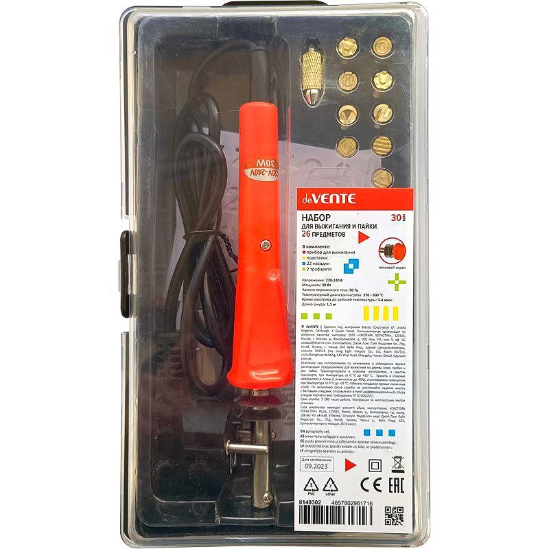 Прибор для выжигания и пайки deVENTE 'Pyrograph' электрический +22 насадки +2трафарета с подставкой
