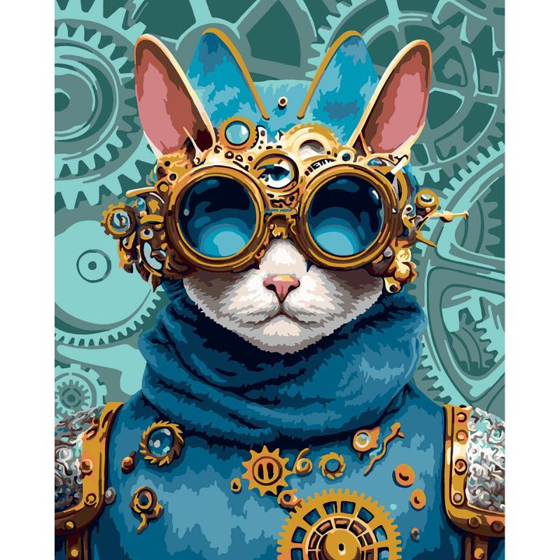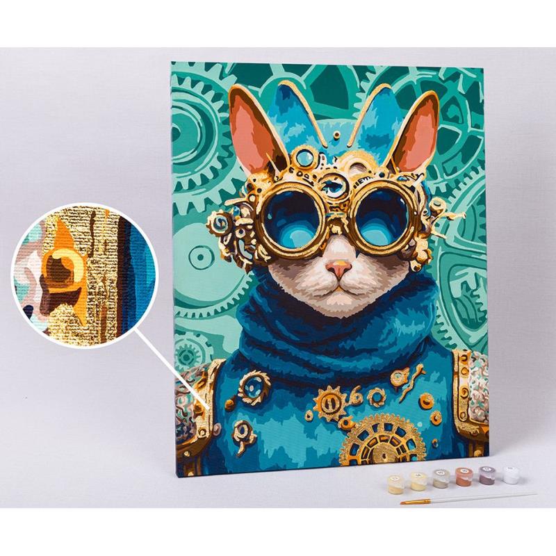 Картина по номерам холст/акрил с поталью 40х50см Фрея 'Кот в стиле стимпанк'