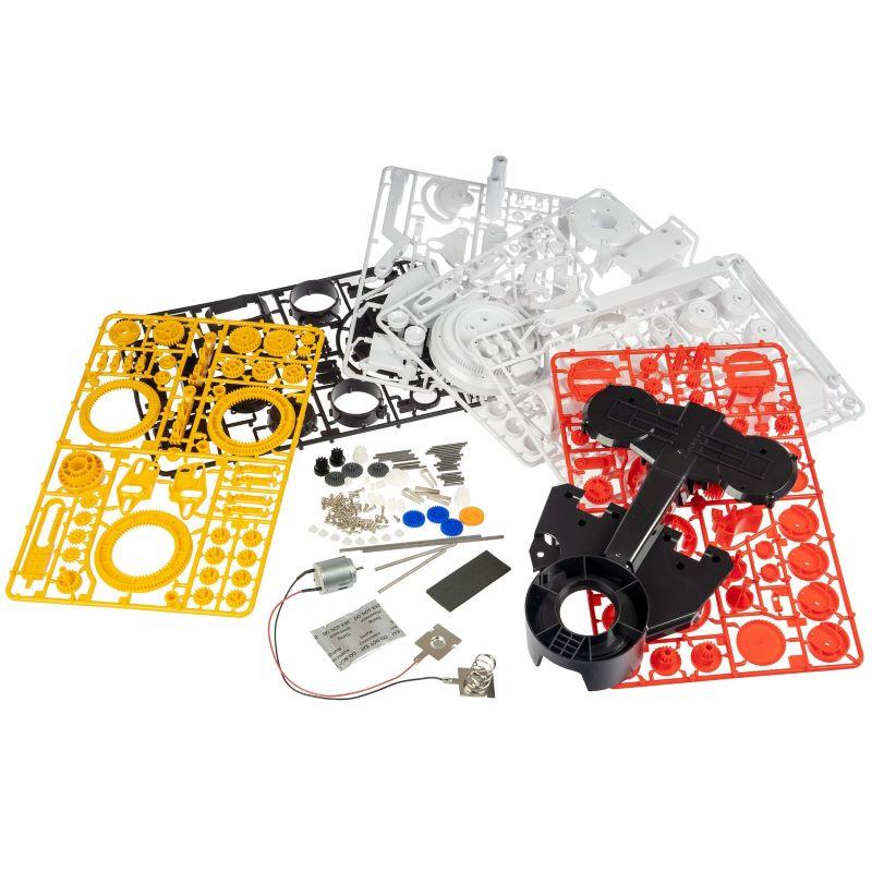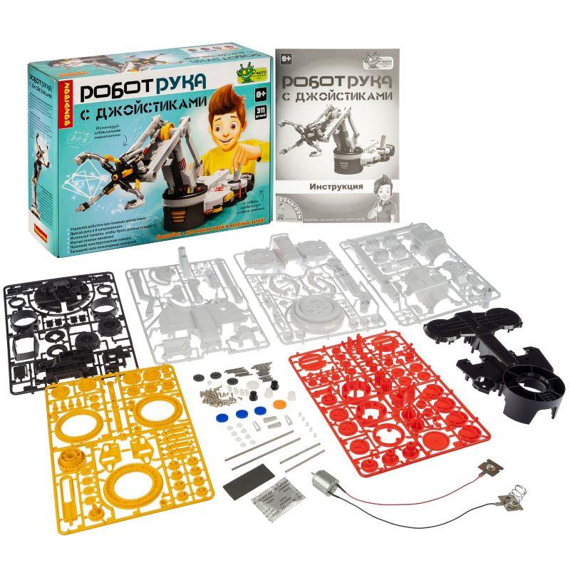 Робототехника с Буки - это научно-познавательные наборы, позволяющие каждому почувствовать себя создателем искусственного интеллекта, ведь робота необходимо собрать самому! Ты ищешь уникального робота с необычными навыками? Этот Робот-рука разработан по новейшей технологии, и он определенно тебя заинтересует! Сними блокировку, нажав на кнопку предохранителя, нажми на красную кнопку включения, и Рука сразу же перейдет в режим ожидания. Гул мотора и шелест вращающихся шестеренок говорят о том, что тебя ждет увлекательная игра. Ты легко освоишь управление Роботом-рукой; оно осуществляется двумя джойстиками – они контролируют 4 оси, которые позволяют руке двигаться в 8 разных направлениях. К роботу-руке прилагаются взаимозаменяемые захваты – с 2 и 4 «когтями», так что ты сможешь брать с ее помощью самые разные предметы. Ты даже сможешь сделать свой собственный игровой автомат – кран-машину «Хватай-ка»!