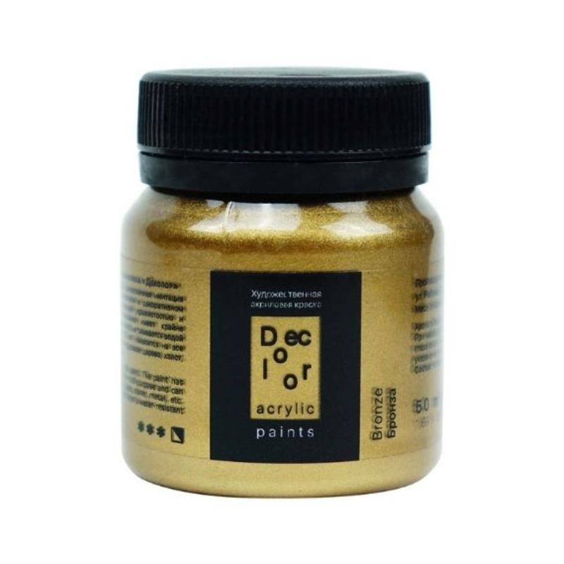 Акриловые краски Деколор создают покрытие, имитирующее благородные и цветные металлы, а также цвета с перламутровым отливом. Применяются во многих видах прикладного творчества, для декораторской работы и живописи. Краски Деколор обладают слабовыраженным запахом, исчезающим при полном высыхании, не подвержены пожелтению и растрескиванию, их можно смешивать между собой для создания новых оттенков, после испарения воды они образуют плотный кроющий слой. Время высыхания Деколор — до одного часа. Используются для окрашивания картона, древесины, гипсовых, каменных и бетонных поверхностей, композитных и пластиковых материалов, керамики, стекла и металла.