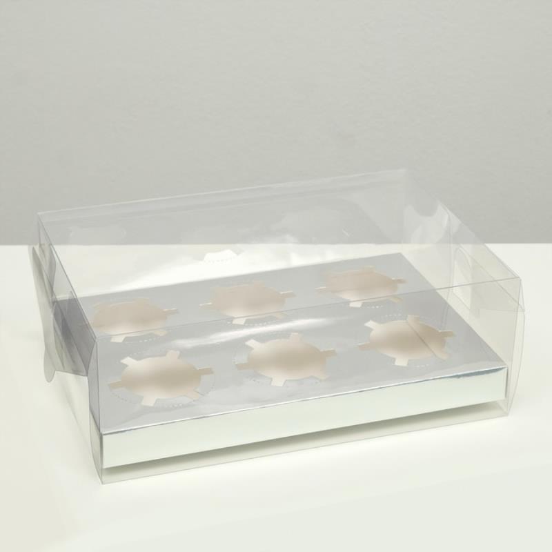 Коробка для капкейков на  6шт 26.8х18.2х10см серебро с пластиковой крышкой