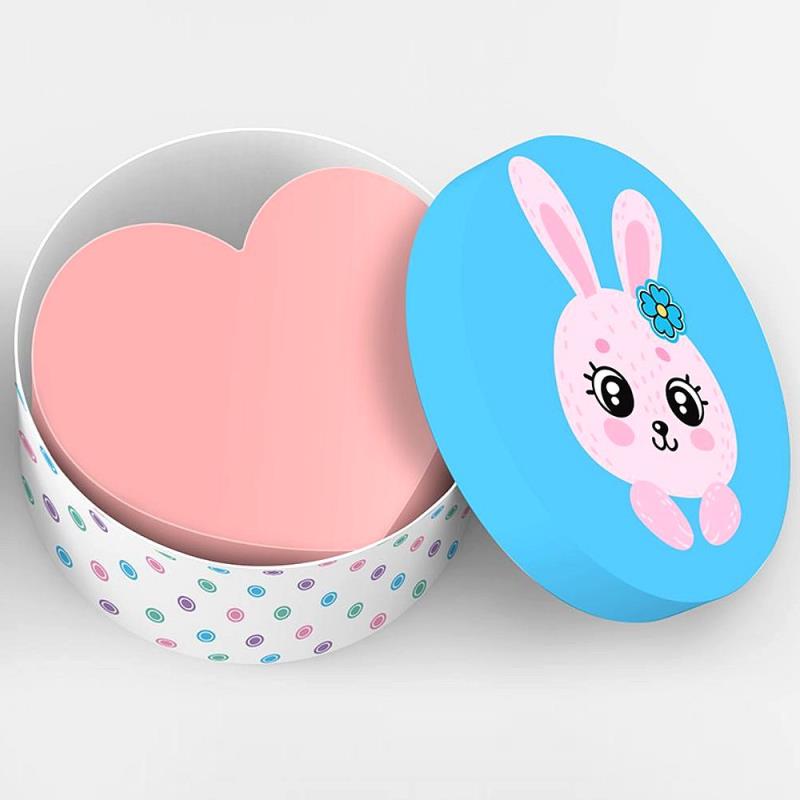 Бумажный куб для записей deVENTE 'Cute Rabbit' пастельный розовый в форме сердца, непроклеенный, в круглой подарочной коробке.