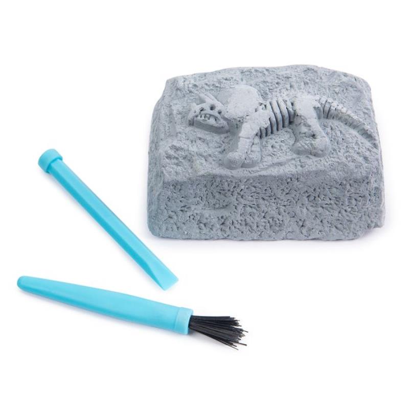 В набор входят: гипсовый блок с сокровищем, инструменты для раскопок.