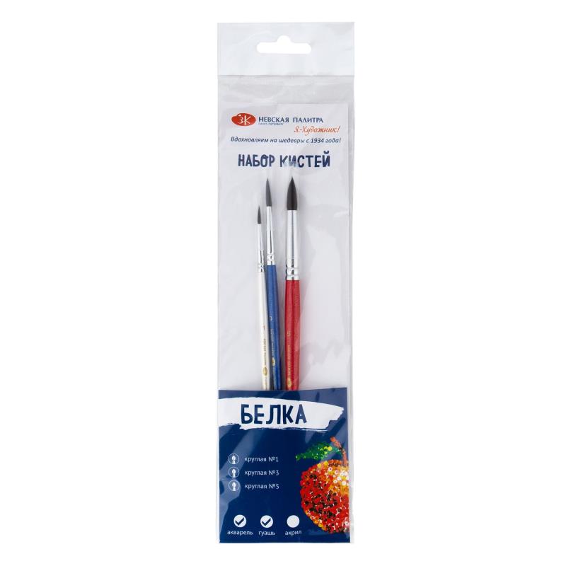 Кисти серии 'Я - Художник!' с ворсом белки идеально подойдут для работы с гуашью и акварелью. Ручка окрашенное дерево. Кисти различного размеры круглой формы: № 1, 3, 5.