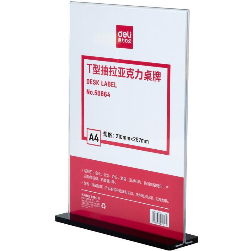 Вертикальный двухсторонний настольный держатель для таблички Deli позволяет размещать постеры и другие демонстрационные материалы формата А4.