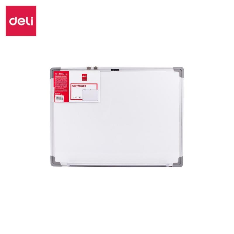 Магнитно-маркерная белая доска Deli с алюминиевой рамкой используется во время презентаций или для отображения материала, который нужно наглядно представить.