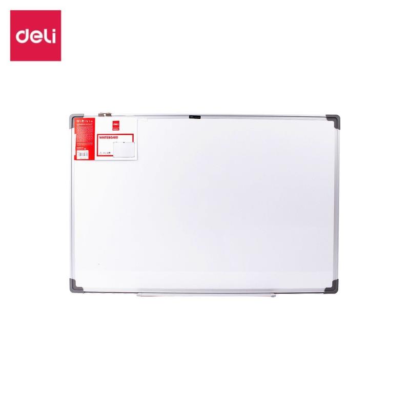 Магнитно-маркерная белая доска Deli с алюминиевой рамкой используется во время презентаций или для отображения материала, который нужно наглядно представить.