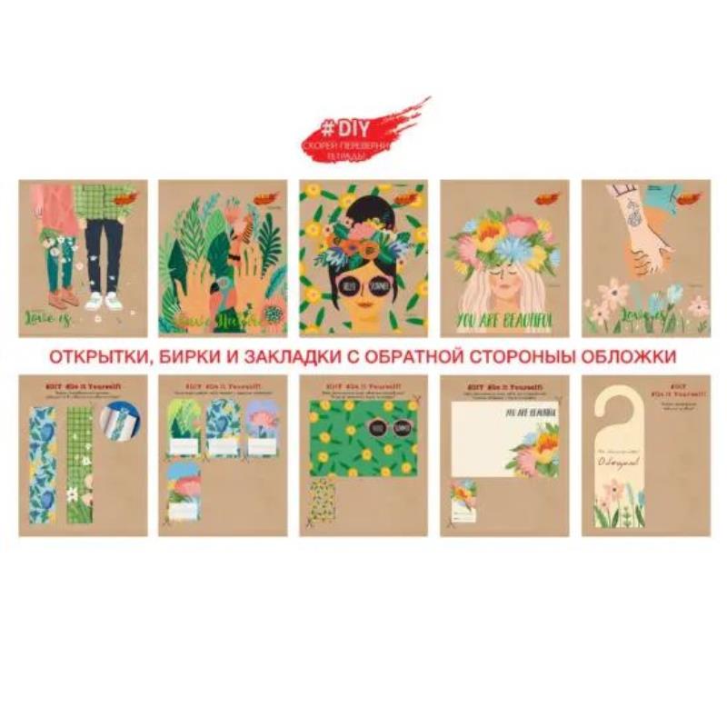 Уникальная коллекция тетрадей «DIY collection» от “Канц-Эксмо” создана не только для ежедневных записей и конспектов, но и для воплощения творческих идеи и замыслов. Каждая тетрадь дополнена мини-наборами для творчества, которые будут весьма актуальны и приумножат позитивное настроение в течении всего года. На обороте задней обложки размещены понятные инструкции, схемы и шаблоны мини открыток, закладок для книг, бирок для подарков, декоративных подставок. Формат: А5. Листаж: 48 листов. Внутренний блок – белая бумага, плотность 60гр/м, . Линовка: клетка с полями. Крепление: скрепка.