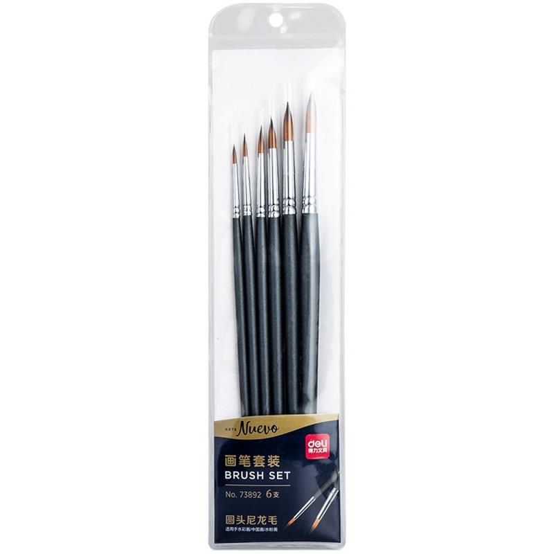 Кисти художественные набор Deli 'Arte Nuevo'  6шт нейлон круглая №2, 4, 6, 8, 10, 12