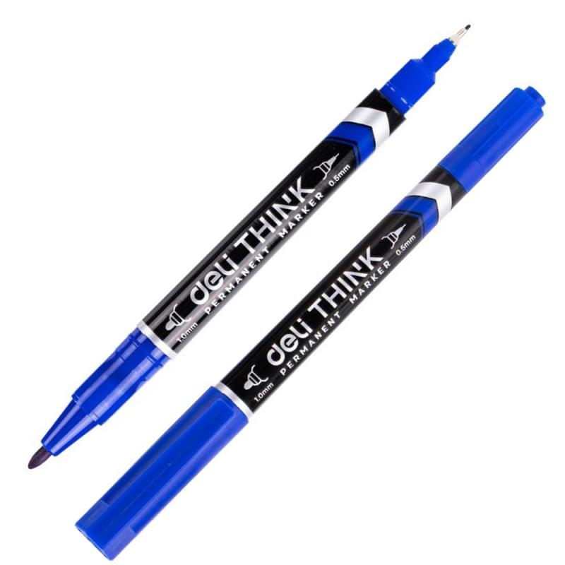 Маркер перманентный двусторонний Deli  0.5/1.0мм 'Think' синий