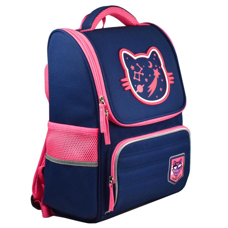 Рюкзак школьный , полиэстер, пластиковая нашивка, резиновая нашивка, шелкография в одну краску, 1 отделение (-я), молния, тип спинки: формоустойчивая спинка из сетчатой ткани и поролона, тип дна: с пластиковыми ножками, ПЭТ-пакет