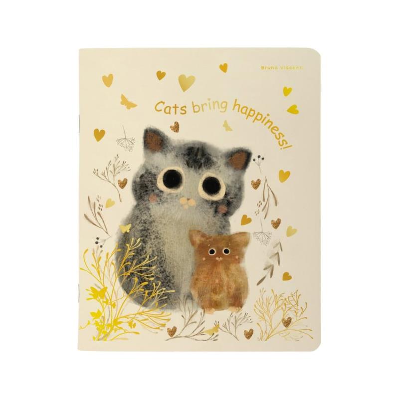 Тетрадь A5  48л клетка на скрепке BrunoVisconti® картонная матовая Soft touch обложка фольга золото 'Love me' Любовь, как она есть 5 дизайнов