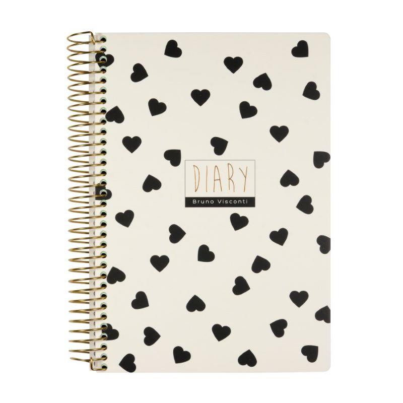 Ежедневник A5 BrunoVisconti® 'Cute diary' 272стр твердая обложка на спирали 'Black&White' Сердечки