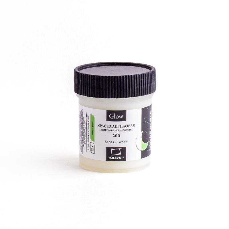 Краска акриловая люминесцентная Малевичъ Glow белая 50мл