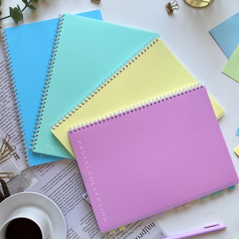 Тетрадь с обложкой из жесткого пластика со кругленными углами на металлическом гребне, титульный лист с персональными данными, шелкография.