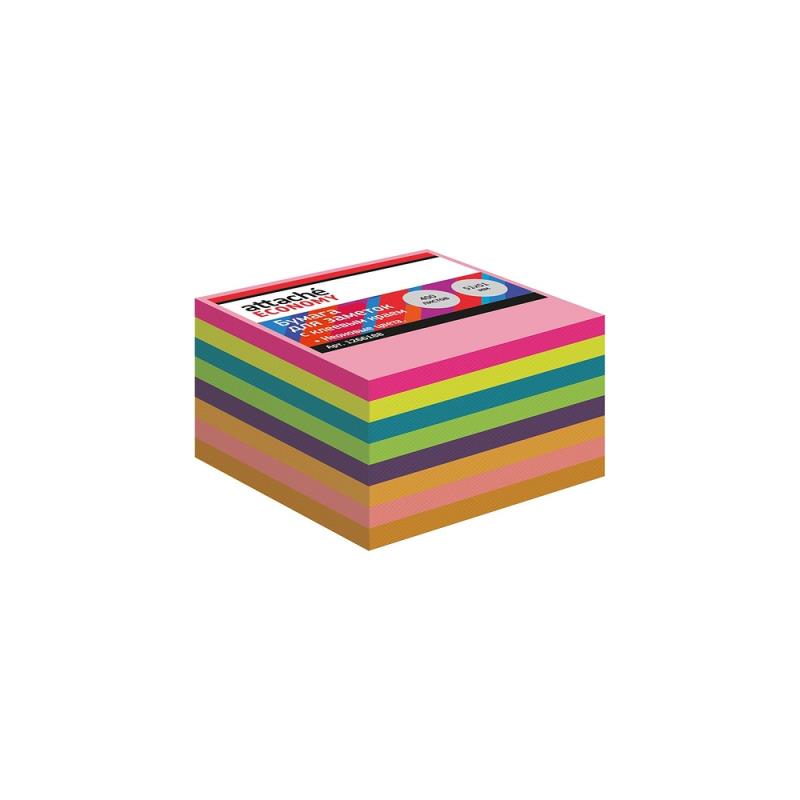 Липкий блок Attache Economy имеют 8 слоев из 8 неоновых цветов (пурпурный, желтый, оранжевый, розовый, зеленый).