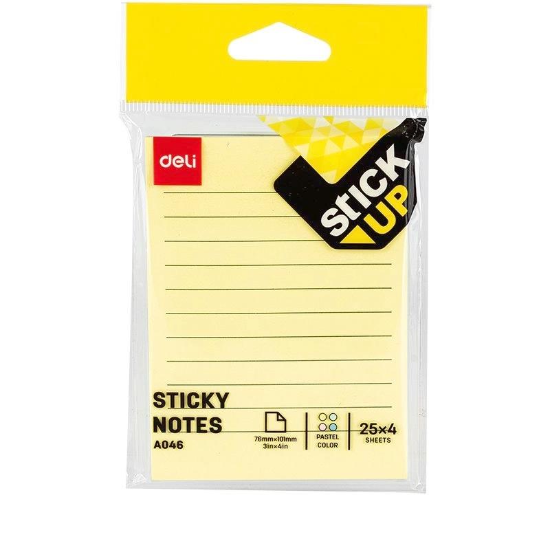 Липкий блок в линейку  76х101мм Deli 'Stick UP'  4цв х 25л 'Pastel'