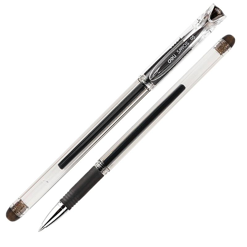 Гелевая ручка в пластиковом прозрачном корпусе с эргономичной резиновой манжеткой, которая снижает напряжение руки во время работы.