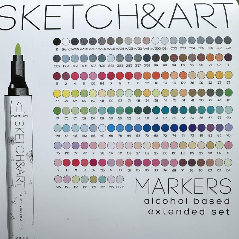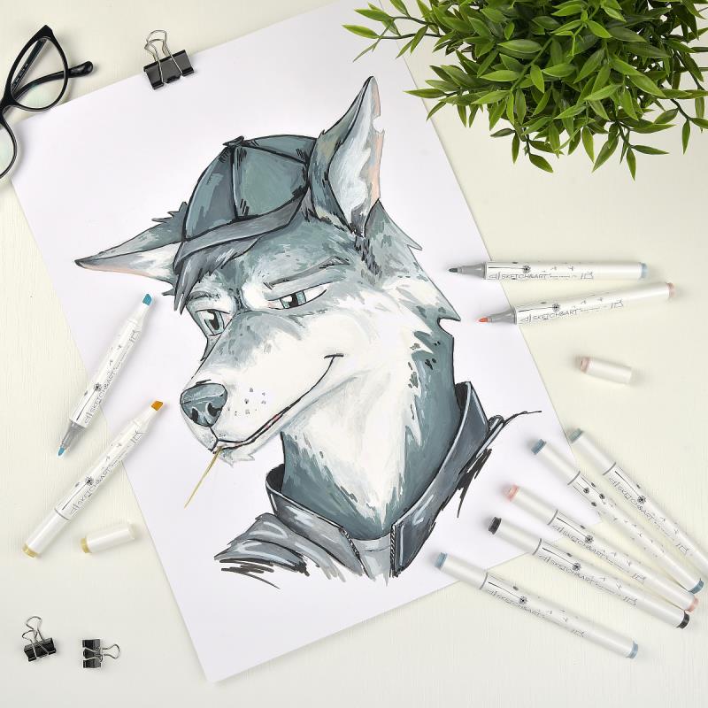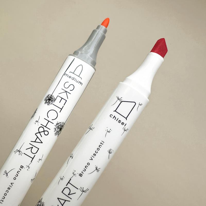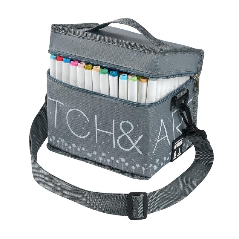 Высококачественные профессиональные маркеры 'SKETCH&ART' для рисования, набросков, дизайнерских работ. Эргономичный трехгранный корпус из полипропилена - легкий и ударопрочный. Плотно защелкивающиеся колпачки обеспечивают долгую сохранность чернил от высыхания, а рельефное нанесение в форме точек на их поверхность предотвращает скольжение руки при открывании. Маркер имеет два наконечника из износостойкого волокна - пулевидный с шириной линии 1 мм и скошенный, позволяющий варьировать ширину линии от 1 до 5 мм. Перманентные чернила на спиртовой основе не токсичны и быстро сохнут на поверхности, оставляя яркий след. Маркеры хорошо ложатся на бумагу разной фактуры и плотности. Более гладкая бумага дает больше простора для смешения цветов и создания градиентов. Маркеры можно использовать и для создания рисунков на стекле, и на светлом пластике, предварительно обезжирив их поверхность. Стойкость и яркость цвета гарантированы! Следы от маркеров легко отстирываются и отмываются с помощью моющих средств. Маркеры упакованы в текстильную сумку (17x12x16.5см) с регулируемым плечевым ремнем и внешнем кармане - удобно хранить и транспортировать.