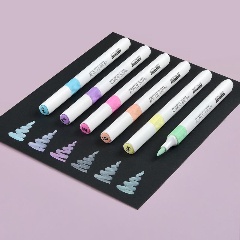 Набор акриловых маркеров-кистей «SKETCH&ART» для рисования, декорирования, дизайнерских работ на любых поверхностях: холст, бумага, дерево, пластик, металл, камень, стекло, одежда, керамика. Корпус маркеров изготовлен из полипропилена - он легкий и ударопрочный. Плотно защелкивающийся колпачок обеспечивает долгую сохранность чернил от высыхания.