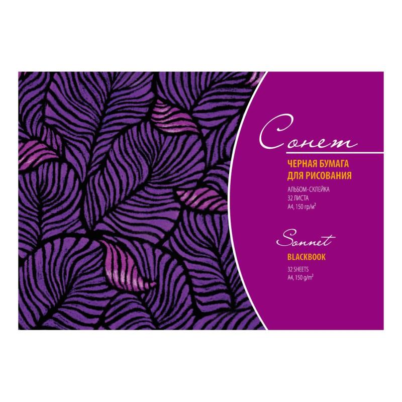 Альбом черной бумаги 'Сонет' предназначен для работ сухими графическими материалами (карандаши, пастель, уголь, мелки), линерами, перьевыми и капиллярными ручками, а также для смешанных техник. Черная гладкая бумага вдохновит на применение новых художественных приемов и воплощение нестандартных идей в жизнь. Альбом удобен в применении - благодаря склейке по короткой стороне легко аккуратно отрывать листы, твердая подложка может служить планшетом дома и на пленэре.