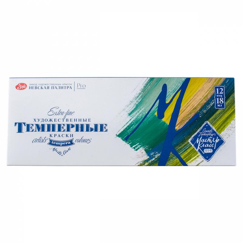 Художественные темперные поливинилацетатные краски «Мастер-Класс» изготавливаются на основе органических и неорганических пигментов и поливинилацетатной дисперсии и являются традиционным материалом для живописи. Благодаря тщательно подобранным компонентам темперные краски прекрасно подходят для живописных и декоративно-оформительских работ. Большинство цветов в палитре монопигментные и обладают высочайшим показателем светостойкости. Все краски выкопигментированные, яркие и чистые. Темпера «Мастер-Класс» позволяет получить многообразие благородных оттенков в разбелах и смесях. Краски легко наносятся на бумагу, картон, дерево, керамику, грунтованный и негрунтованный холст. При высыхании образуют эластичную, непрозрачную, несмываемую пленку. Сбалансированная палитра из 12 цветов в наборе «Мастер-Класс» позволяет решить множество творческих задач художника. Температура транспортирования/хранения: не ниже 0 °С/не ниже 0 °С.