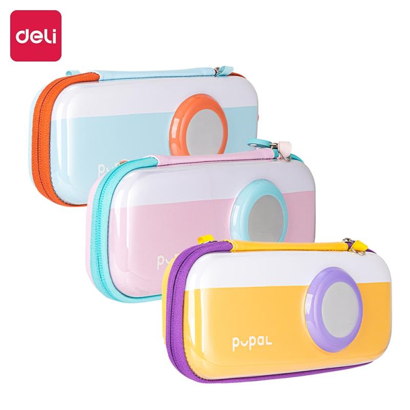 Большой прочный школьный пенал Deli из EVA с ремнем. Внутреннее сетчатое отделение на молнии. Держатели для принадлежностей. Материал: EVA+PET