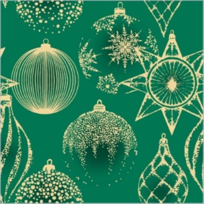 Салфетки новогодние Bouquet Home Collection Classic 'Золотые украшения на зеленом' 33х33см 20шт 3-слойные