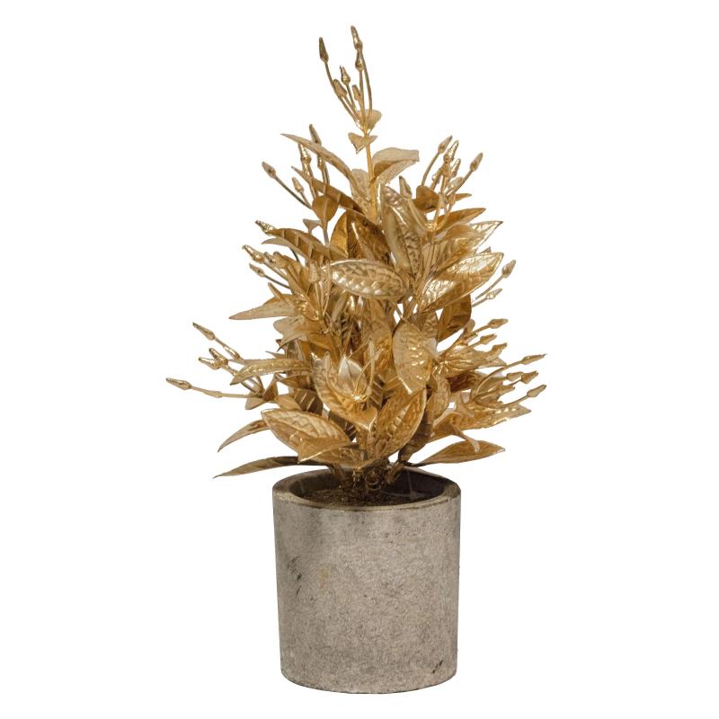 Растение искусственное золото кашпо серое 28см