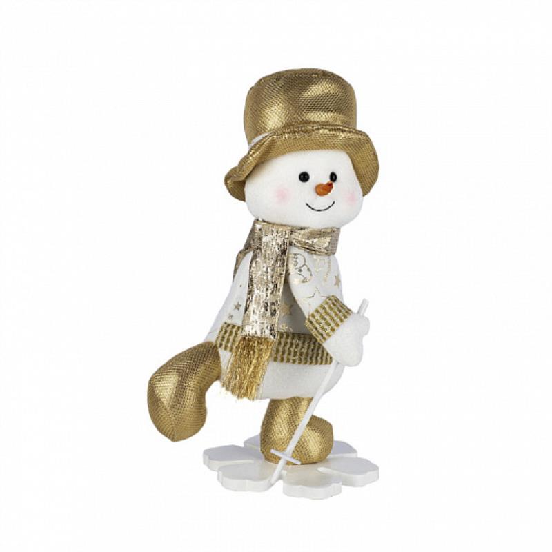 Игрушка декоративная мягконабивная в виде снеговика идеально впишется в новогодний интерьер и будет радовать домочадцев и гостей праздника. Забавный облик игрушки осчастливит ребенка и станет ему замечательным другом. Костюмчик фигуры выполнен из качественных текстильных материалов, цвета текстиля отлично впишутся в новогоднюю тематику практически любого дома.