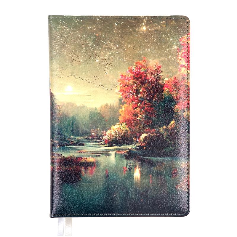 Недатированный ежедневник с твердой обложкой из искусственной кожи с поролоном с отстрочкой и цветной печатью, тиснением фольгой, перфорацией уголков, закругленными уголками, 2 ляссе.