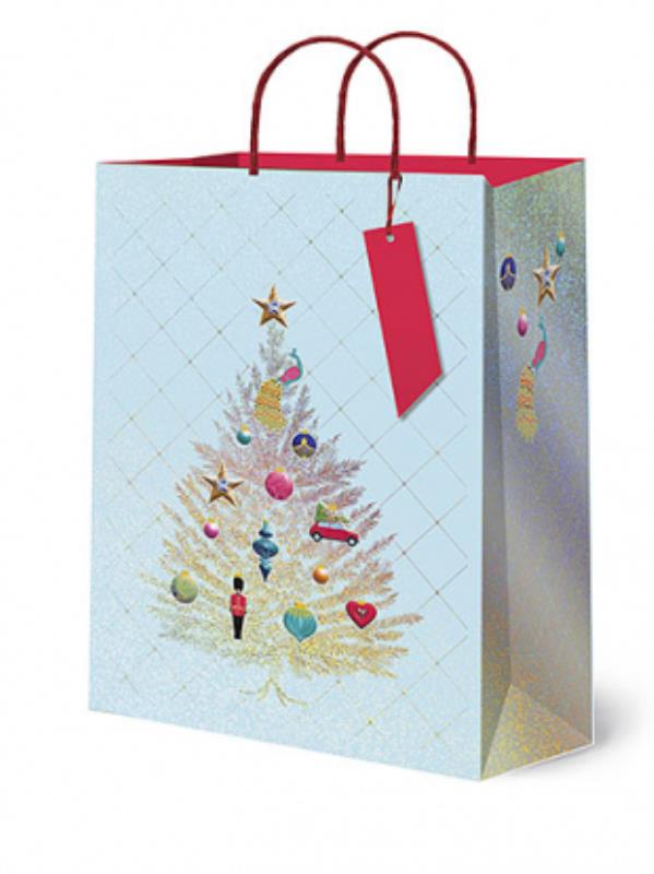 Выборочный УФ-лак, детали-бирки, блёстки в лаке, матовая ламинация, ручки из крученого шпагата, атласная лента.