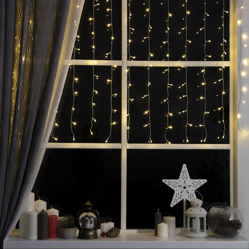 Световой занавес 1.5х1м 180 теплых LED огней прозрачный провод 8 режимов мигания