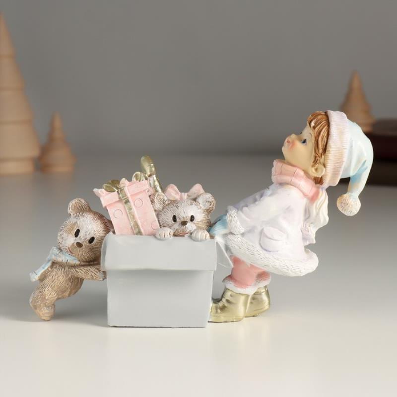 Сувенир новогодний 15см 'Малышка с коробкой новогодних игрушек' полистоун 2 дизайна