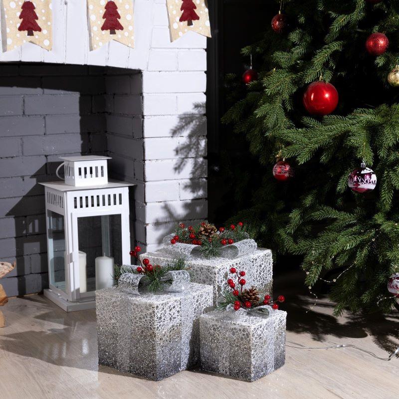 Фигура светодиодная Подарки серебристые h-15/20/25см 45 LED