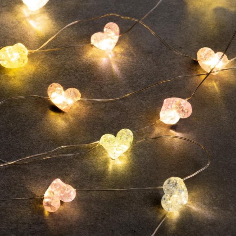 Электрогирлянда  2.0м 'Мишура' роса 20 белых LED ламп 'Сердечки' серебристая на батарейках 3 режима