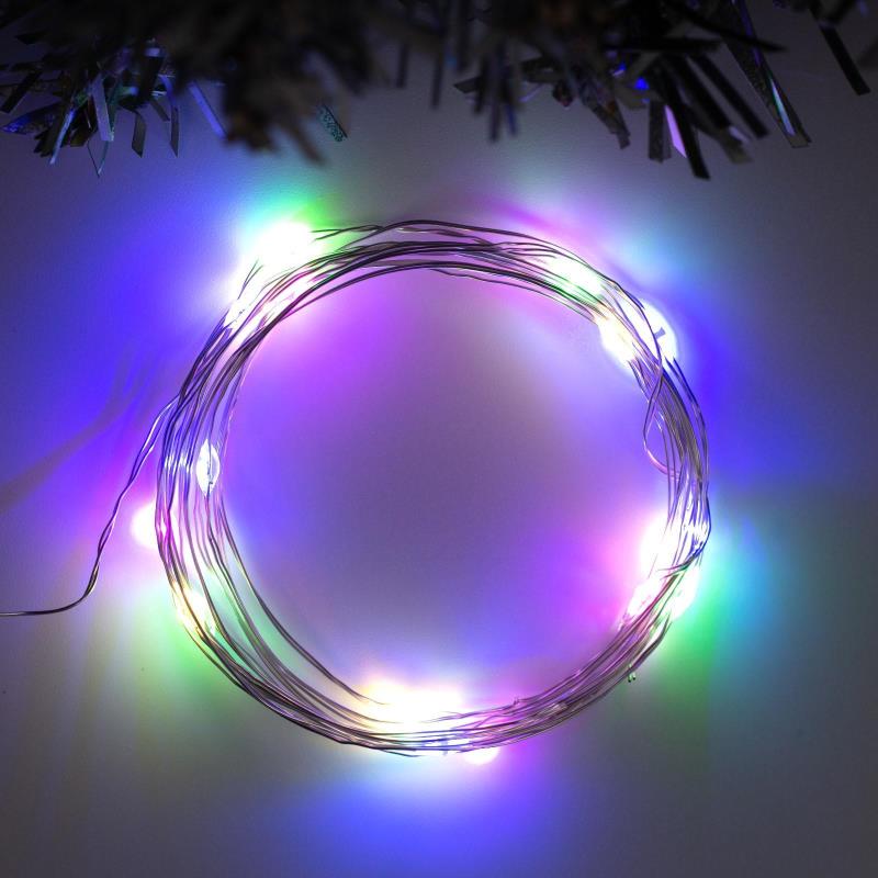 Электрогирлянда  2.0м Нить 20 разноцветных LED ламп серебристый провод