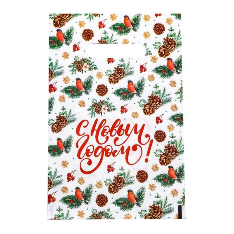 Пакет подарочный новогодний 20х30см полиэтиленовый с вырубной ручкой 'С Новым Годом'