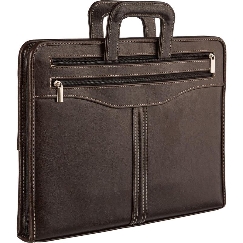 Папка-портфель Алекс 'Гамма' с выдвижными ручками из коричневой искусственной кожи с контрастной строчкой.