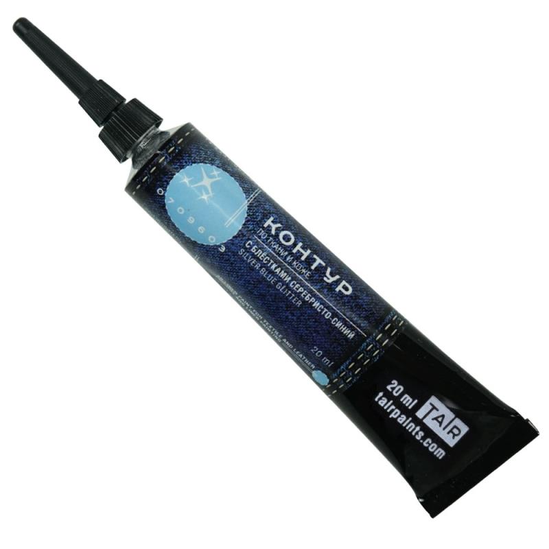 Контур акриловый по ткани и коже Таир  с блёсками серебристо-синий 20мл