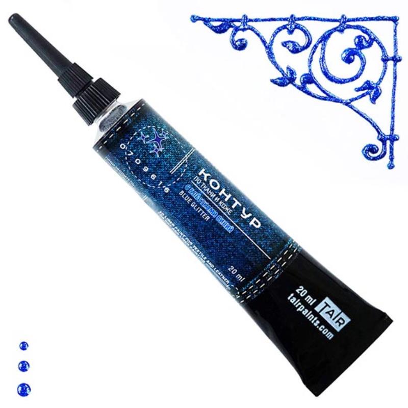 Контур акриловый по ткани и коже Таир  с блёсками синий 20мл