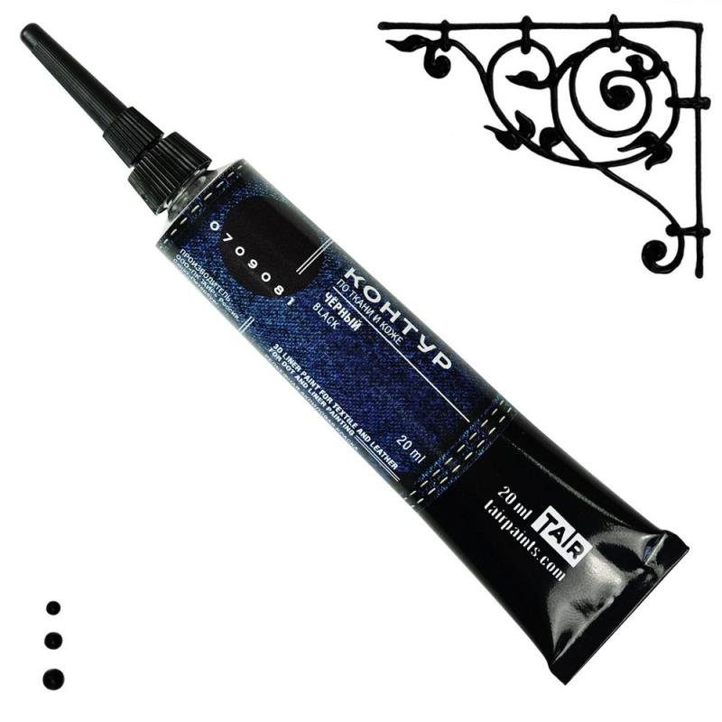 Контуры — это акриловые краски в тубе с острым наконечником, которые наносятся прямо из тюбика. Предназначены для создания контурных и точечных рисунков на ткани и коже (натуральные ткани, натуральная кожа, кожзаменители). Также могут применяться и на других поверхностях, таких как дерево, бумага, пластик и т.д. Обладают высокой рельефностью и хорошо держат форму. Акриловые контуры ТАИР обладают густой консистенцией и отлично зарекомендовали себя в технике популярной точечной росписи и имитации вышивки. Кроме того, они используются для подрисовок тонких линий, узоров и рисования надписей в миксмедийных и скрапбукинговых техниках. В декупаже контуры часто применяются для того, чтобы скрыть границу приклеенного рисунка или для подрисовки отдельных элементов.