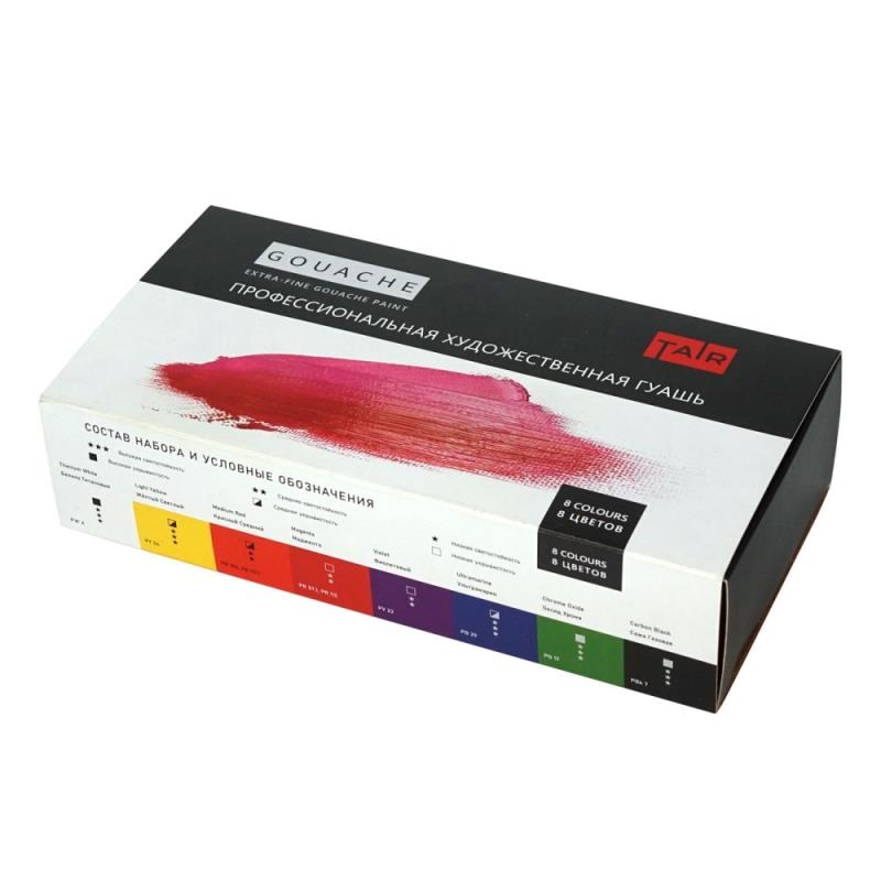 Профессиональная художественная гуашь, сочетает в себе яркие открытые цвета и восхитительную матовую бархатистую поверхность после высыхания. Гуашь Таир практически не изменяет цвет после высыхания, краски остаются по-прежнему яркими и насыщенными. Гуашевые краски прекрасно смешиваются между собой, не растекаются, позволяют работать в различных техниках. При необходимости разбавляются водой. Гуашь предназначена в первую очередь для графики, плакатов, эскизов и других живописных работ, но также она подходит и для всех видов декоративно-прикладного творчества и для занятий с детьми. Подходящими для работы подложками являются: бумага, картон, дерево, гипс, грунтованный холст.