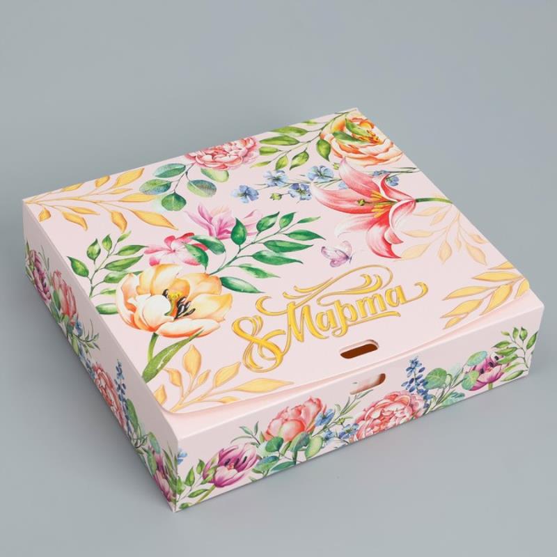 Коробка подарочная 20х18х5см '8 марта' складная