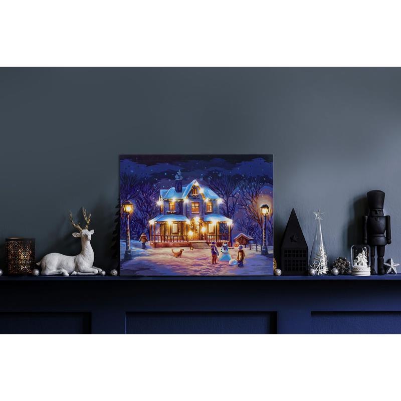 В набор входит: холст на подрамнике, акриловые краски, три кисти разного размера, гирлянда со светодиодами, контрольный лист с нанесенной схемой, инструкция с эталоном готовой картины, держатель для готовой работы.