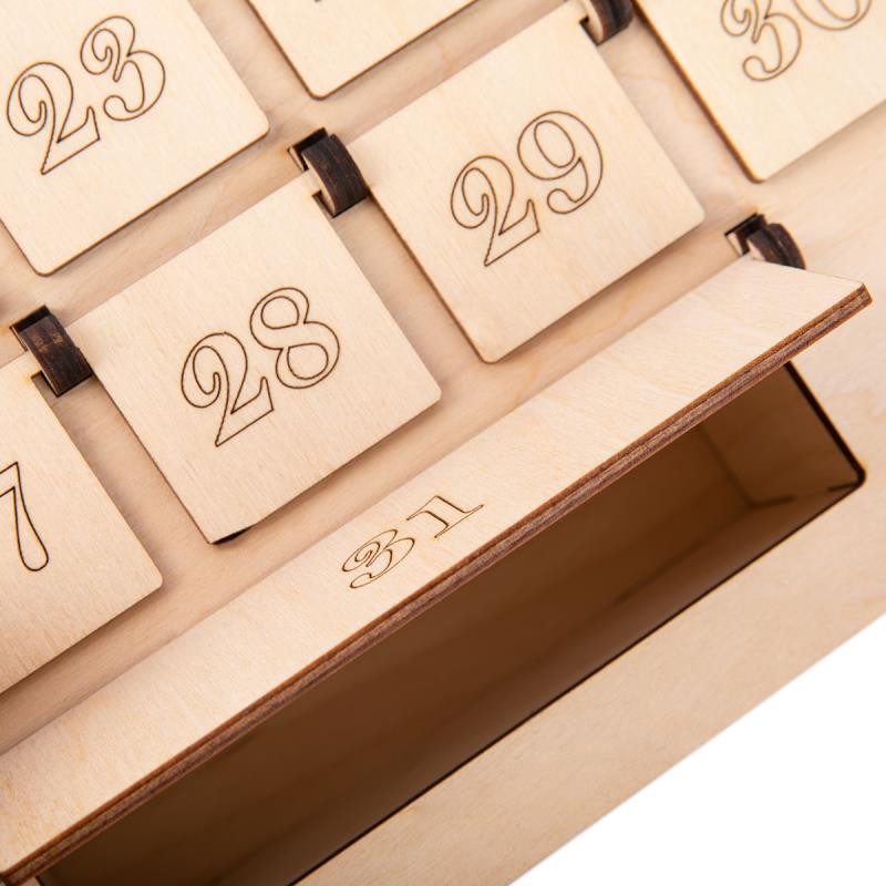 Заготовка "Адвент-календарь" выполнена из фанеры толщиной 3 и 6 мм с 31 ящичком. Прекрасно подходит для творческого отдыха людям любого возраста, а также для совместного творчества с Вашим ребенком. Заготовку можно задекорировать в технике декупаж, украсить с помощью бусин, бисера, микробисера, расписать акриловыми красками и т. д.