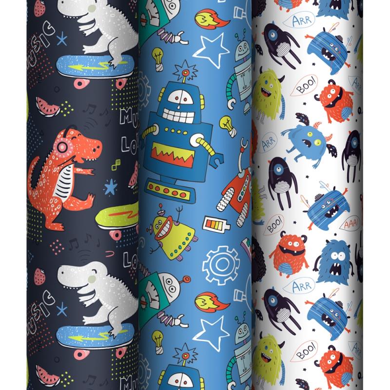 Бумага упаковочная глянцевая MESHU  70х100см 'Monsters'  3 дизайна ассорти