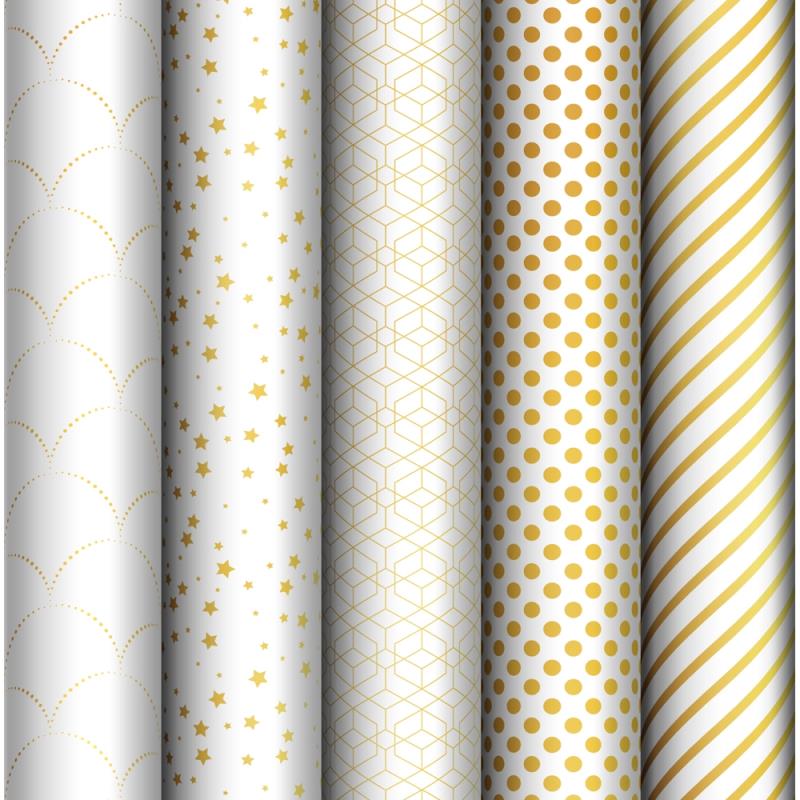 Бумага упаковочная глянцевая MESHU  70х100см 'Pattern on white'  5 дизайнов ассорти