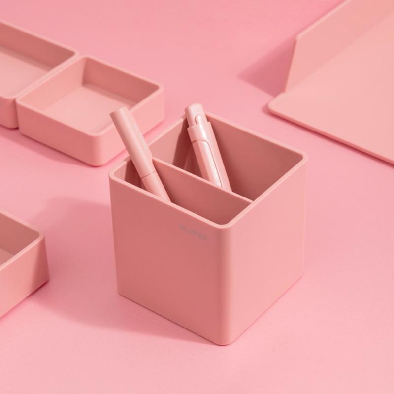 Подставка для принадлежностей Deli 'Nusign' 2 отделения  8x 9x 8см розовая